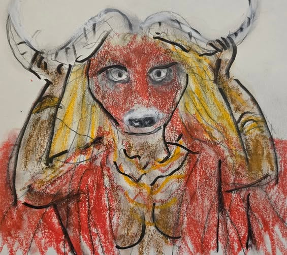 Drawing: Oya as Red Water Buffalo by Robert Moss.